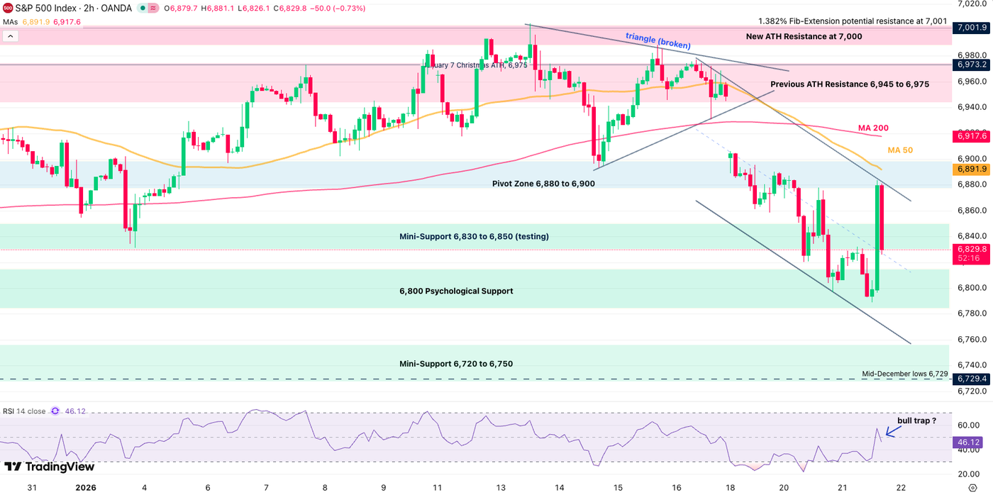 - Support 6,720 to 6,750 (Mid-December lows at 6,729)