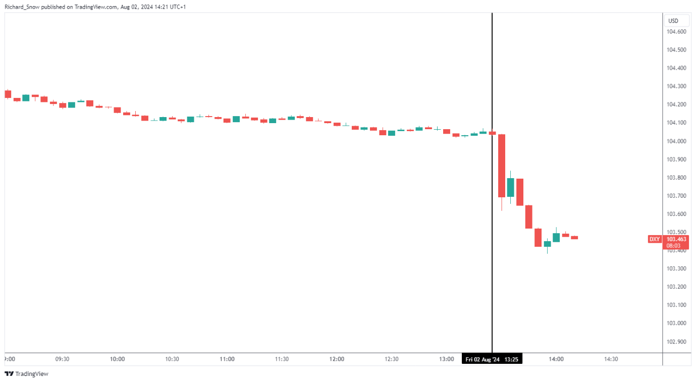 US Dollar Index 5-Minute Chart as of Aug 02, 2024 (Source: DailyFX)