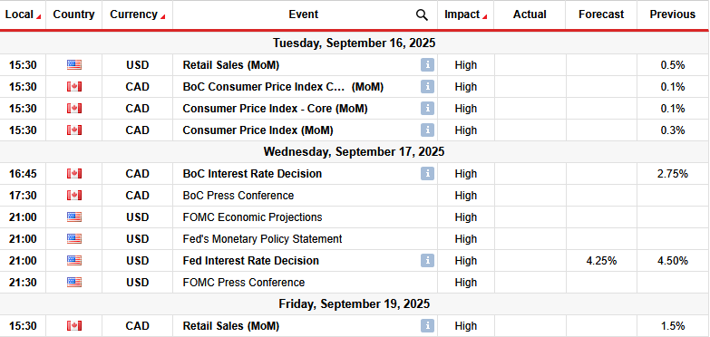 The Bank of Canada is under pressure to lower borrowing costs due to the weak labor market in Canada. Similarly, market participants expect the Fed to cut rates next week. Data during the week revealed slightly hotter-than-expected US consumer inflation. However, a weak unemployment claims report overshadowed it, keeping rate cut expectations elevated.