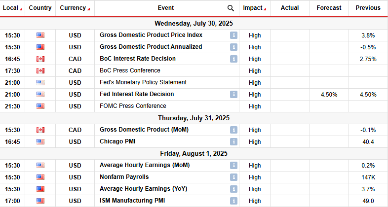 Next week, traders will focus on major economic events, including the US GDP, FOMC meeting, and the nonfarm payrolls report. Meanwhile, Canada will release its GDP report, and the Bank of Canada will also meet next week.