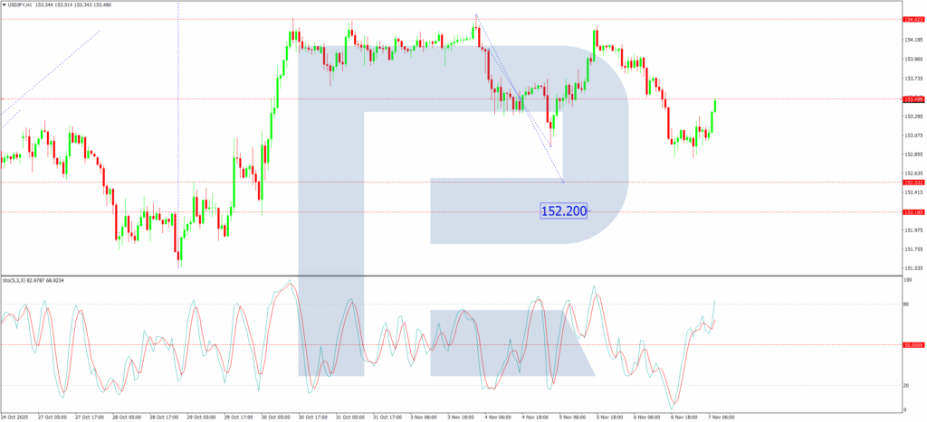 On the H1 chart, the pair is completing a corrective rise to test 153.50 from below. A tight consolidation range is forming around this level. We expect this range to break downwards initially, with a first target at 152.52. A rebound to 153.50 may follow. The broader trajectory hinges on the subsequent breakout. An upward breakout opens the path to 155.70, while a downward breakout would likely extend the correction towards 149.90. The Stochastic oscillator on the H1 offers a conflicting short-term signal. Its signal line is above 50 and rising towards 80, suggesting the potential for limited near-term upside before the next directional move.