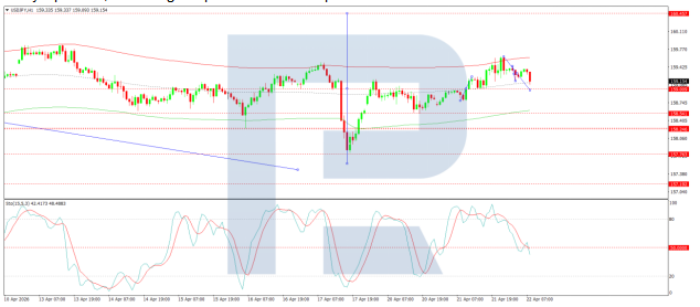On the H1 chart, the market is forming the structure of a downward wave to 159.00. A move higher towards 160.44 is possible thereafter. The scenario is confirmed by the Stochastic oscillator, with its signal line below the 50 level and pointing firmly downwards towards 20, indicating that short-term downside potential remains.