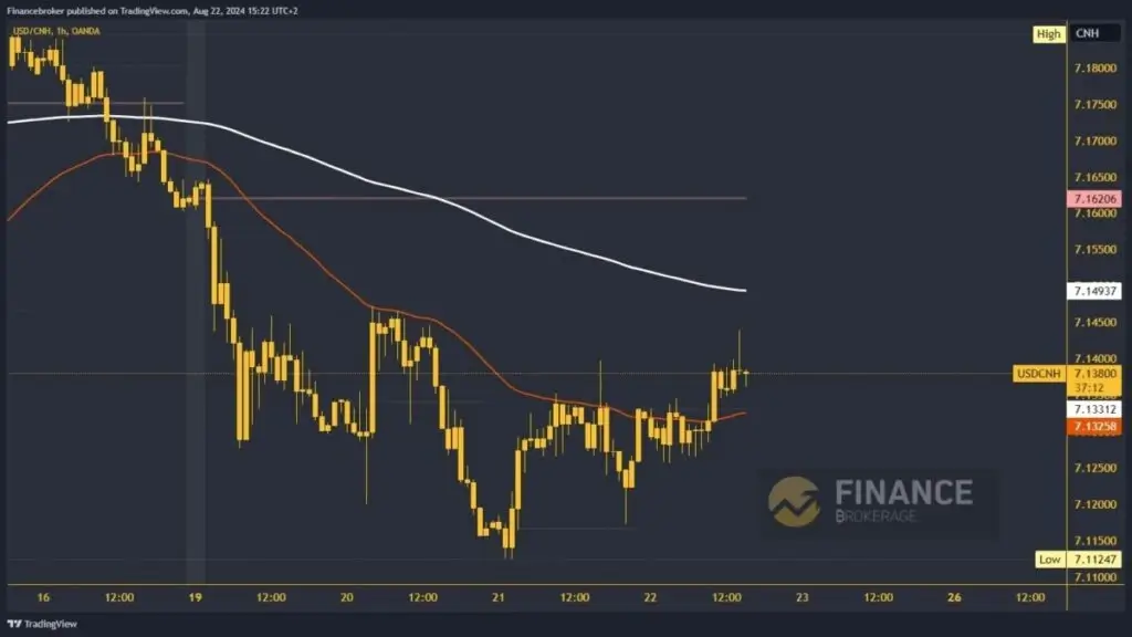 During the Asian session, USDCNH managed to stabilize above the 7.12500 level. This triggered a bullish consolidation and a jump to the daily high at the 7.14400 level. Meanwhile, we received support from the EMA 50 moving average, which added to the bullish momentum. Potential higher targets are 7.14500 and 7.15000 levels. The pair could have additional resistance in the EMA 200 moving average in the zone of 7.15000 levels.