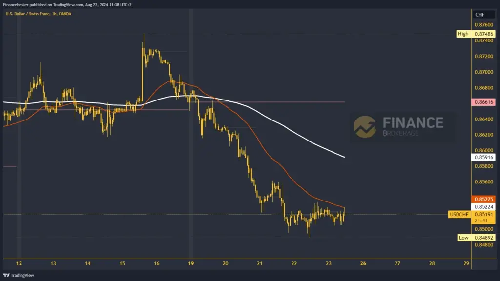 After a bad start at the beginning of the week, USDCHF stabilized yesterday and started a slight recovery. During this morning’s Asian session, the movement took place in the 0.85050-0.85250 range. The pair is currently calm and gradually leaning to the bullish side. We need a push to 0.85300 to break the EMA 50 moving average. With its support, optimism for a longer USDCHF recovery is growing.