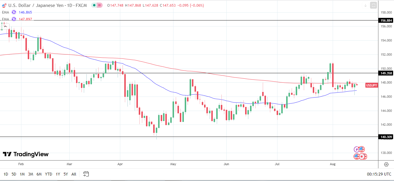 Higher retail sales and a sharper pickup in consumer sentiment could temper expectations of multiple Fed rate cuts. Rising consumer confidence may indicate a sharper pickup in spending, fueling demand-driven inflation. Under this scenario, the USD/JPY pair could rise above the 200-day EMA. A break above the 200-day EMA may allow the bulls to target the 149.358 resistance level.