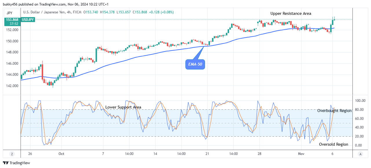 The intervention from the bulls at the $153.11 supply value in the previous action has made the price of USDJPY rise above the resistance levels in its recent hike.