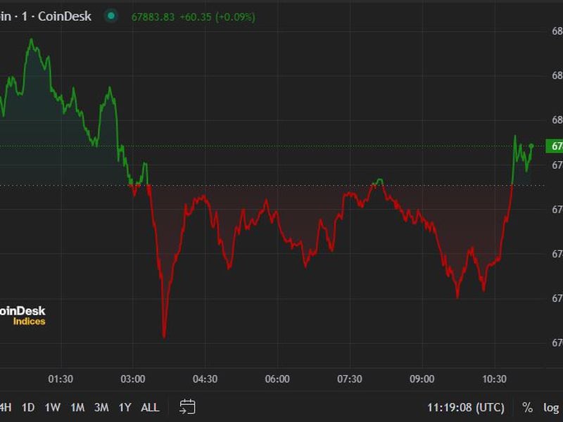 Bitcoin held its ground above $67,000 during the European morning following the Fed’s hawkish interest rate projections on Wednesday. The U.S. central bank left rates unchanged on Wednesday and predicted just one reduction this year, which sent bitcoin lower. Following a dip toward $67,000 during the Asian morning, BTC ticked back upward swiftly before trading between $67,200-$67,800. At time of writing, bitcoin is sitting above $67,900, up 0.16% 24 hours ago. The CoinDesk CD 20, meanwhile, is down 0.34% in that time. Ether has fluctuated either side of $3,500, currently 1.1% down in the last 24 hours.