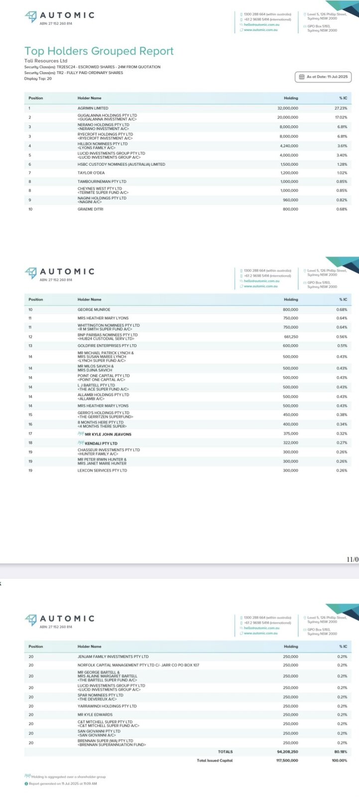 | Contact details | https://www.taliresources.com.au/ |