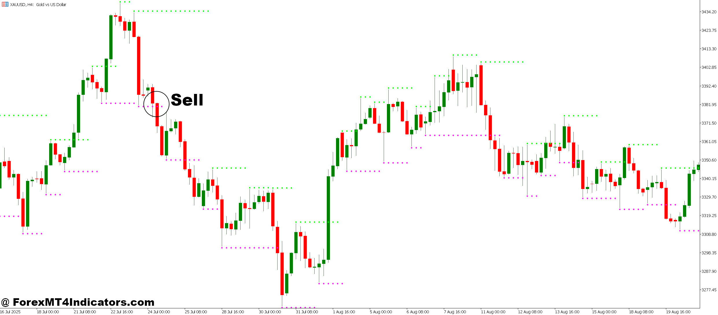 - Wait for the indicator to give a sell arrow or red signal on the chart.