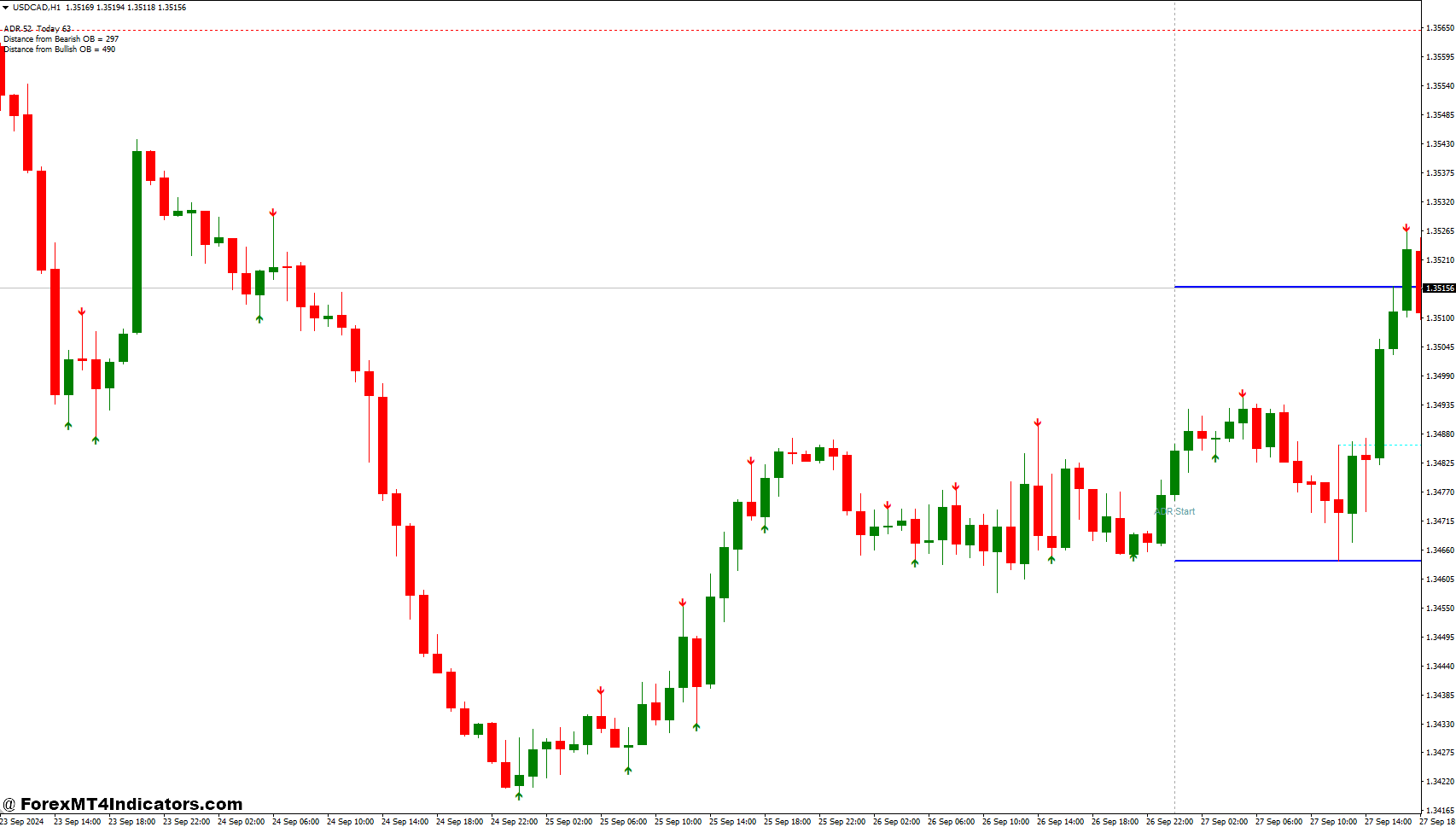 The ADR component of this indicator enhances its effectiveness by measuring the average daily volatility of a currency pair. By calculating the ADR, traders gain insights into how much the price typically moves within a day, which helps in understanding the context of the order blocks identified. For instance, when the price approaches an order block after a significant movement, traders can anticipate potential reversals or breakouts, increasing their chances of successful trades. The indicator visually marks these order blocks on the chart, making it easier for traders to spot high-probability zones for trading.
