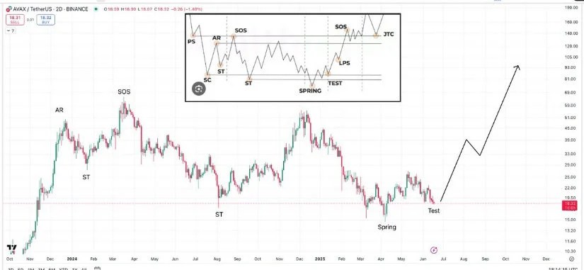 Avalanche forms a textbook Wyckoff accumulation pattern, signaling a potential bullish phase ahead. Source: The Great Mattsby via X