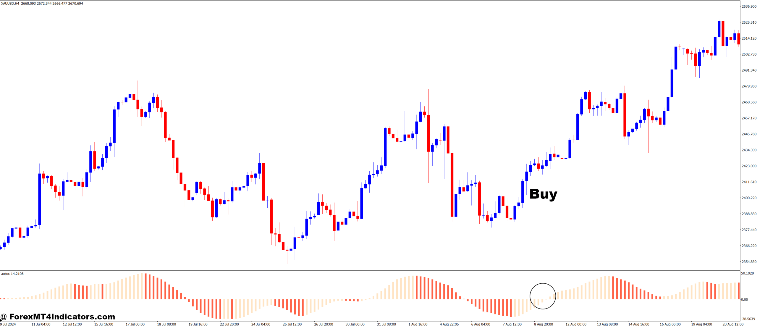 - Signal Confirmation: Look for a green or bullish signal on the Awesome OC MT4 Indicator, which typically indicates upward momentum.