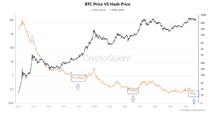 Woominkyu’s analysis suggested that the hash price can be used as a bullish signal. A comparison with Bitcoin lows suggested that the hash price, at the bottom of its trend, could signal bullish opportunities ahead.