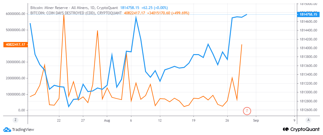 The surging miner reserves suggests that miners have been HODLing their coins in anticipation of higher prices. We also observed the highest spike in coin days destroyed in August.