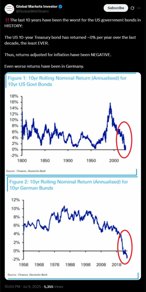 The declining bond yields will likely make them less attractive investments, and this may shift the tide in favor of Bitcoin.
