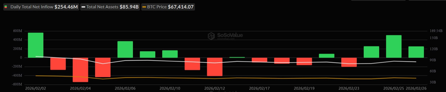 Still, three days of inflows do not establish a durable trend, especially if Bitcoin is to make a credible push toward $90,000 in March.