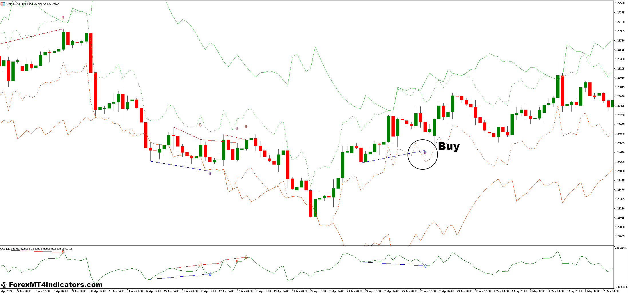 What makes the RSI Bands particularly useful is their ability to filter out market noise and provide clearer signals during periods of high volatility. In trending markets, the RSI Bands can help traders ride trends confidently by identifying pullbacks or corrections within the trend. In ranging markets, the bands serve as reliable boundaries, highlighting areas where price is likely to reverse. By combining the RSI Bands with other indicators, such as the CCI Divergence, traders can confirm signals and enhance their decision-making process. This adaptability makes the RSI Bands Indicator a valuable tool for traders seeking precision and consistency in both trending and choppy market conditions.