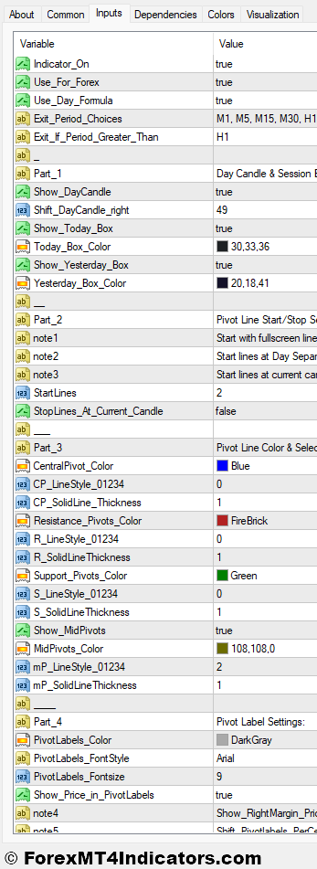 • Changing Line Styles and Colors: MT4 often allows you to customize the appearance of indicators on your charts. Adjusting line styles and colors can enhance visual clarity and make it easier to distinguish between pivot points and support/resistance levels.