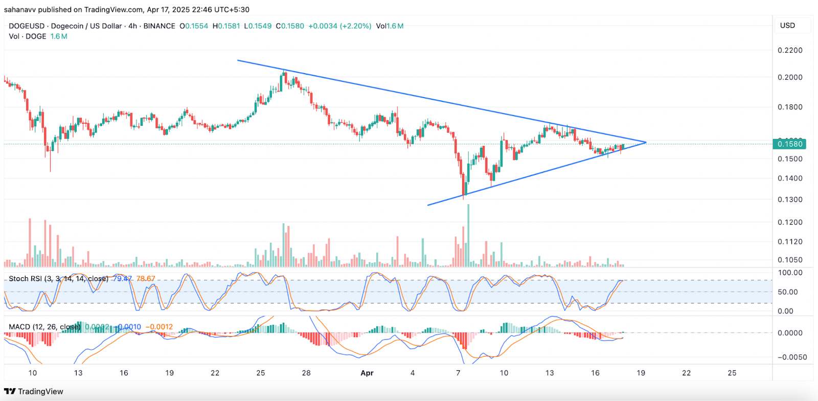 As per the data from a popular reporting platform, Whale Alert, an interesting transfer of over 478 million DOGE between two unknown wallets was reported. Another data from Santiment shows these whales have been on a selling spree since the first week of April. Despite the growing selling pressure over the token, the trade setup suggests the Dogecoin (DOGE) price is due for a major breakout, which may clear the path towards $0.2.