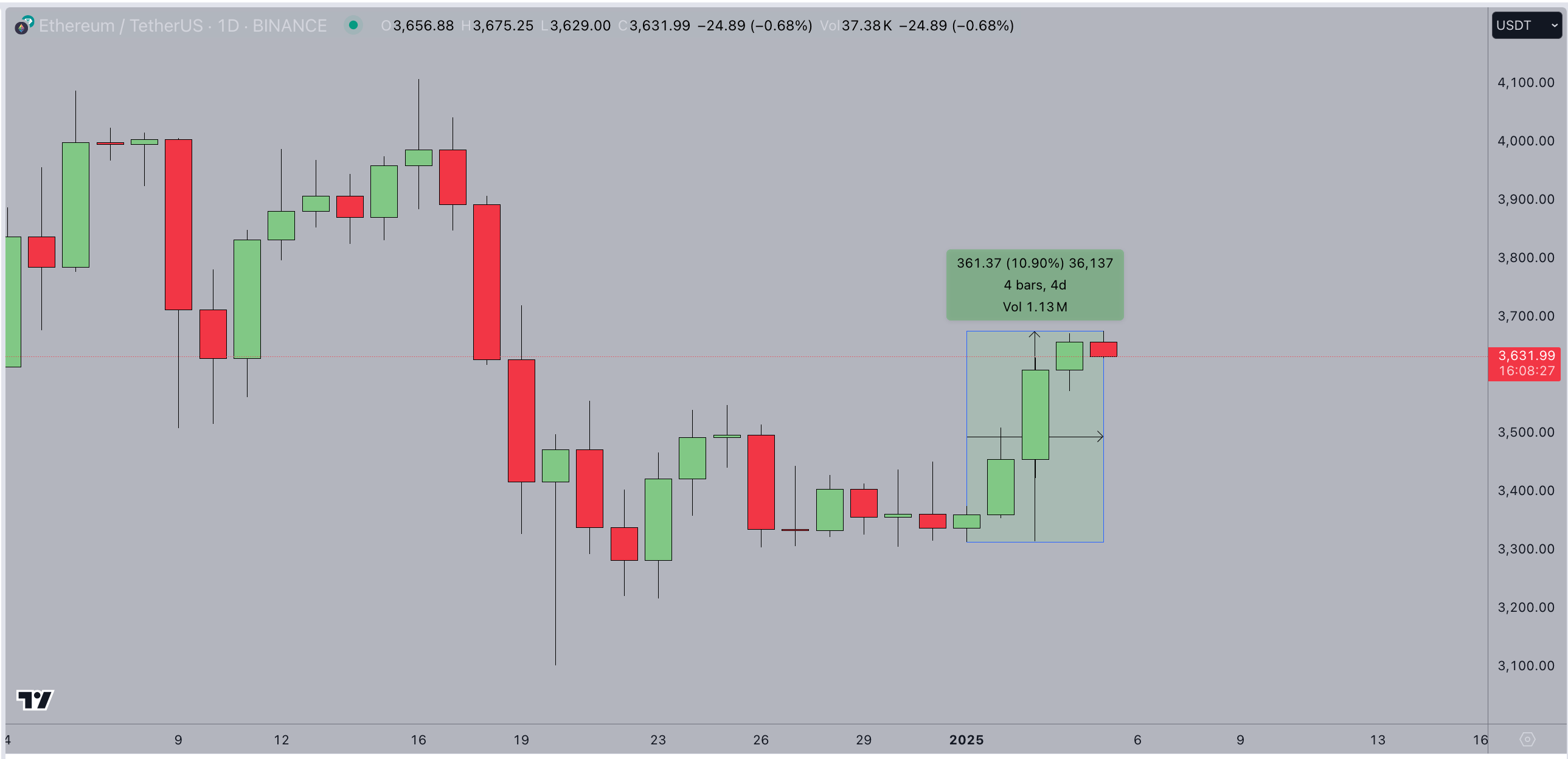 Despite sluggish ETF demand, ETH price continued its impressive rally on Sunday, pushing its 2025 gains into double digits. As shown in the chart above, ETH began trading on January 4 at $3,656, marking an 11% increase from its 2025 opening price of $3,310.