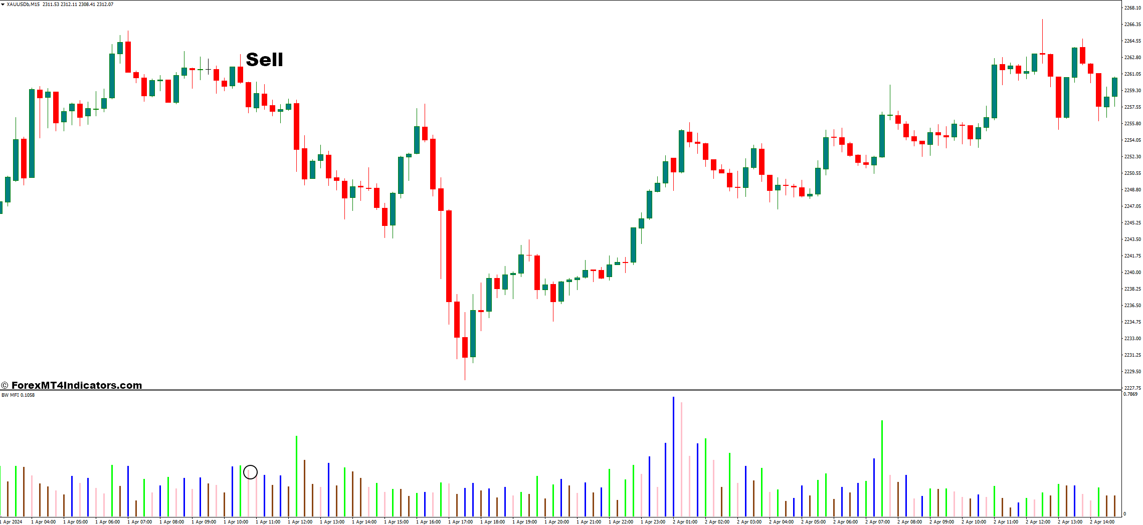 - Visual Representation: The MFI displays its readings as a series of colored bars beneath the price chart, allowing for easy visual interpretation.