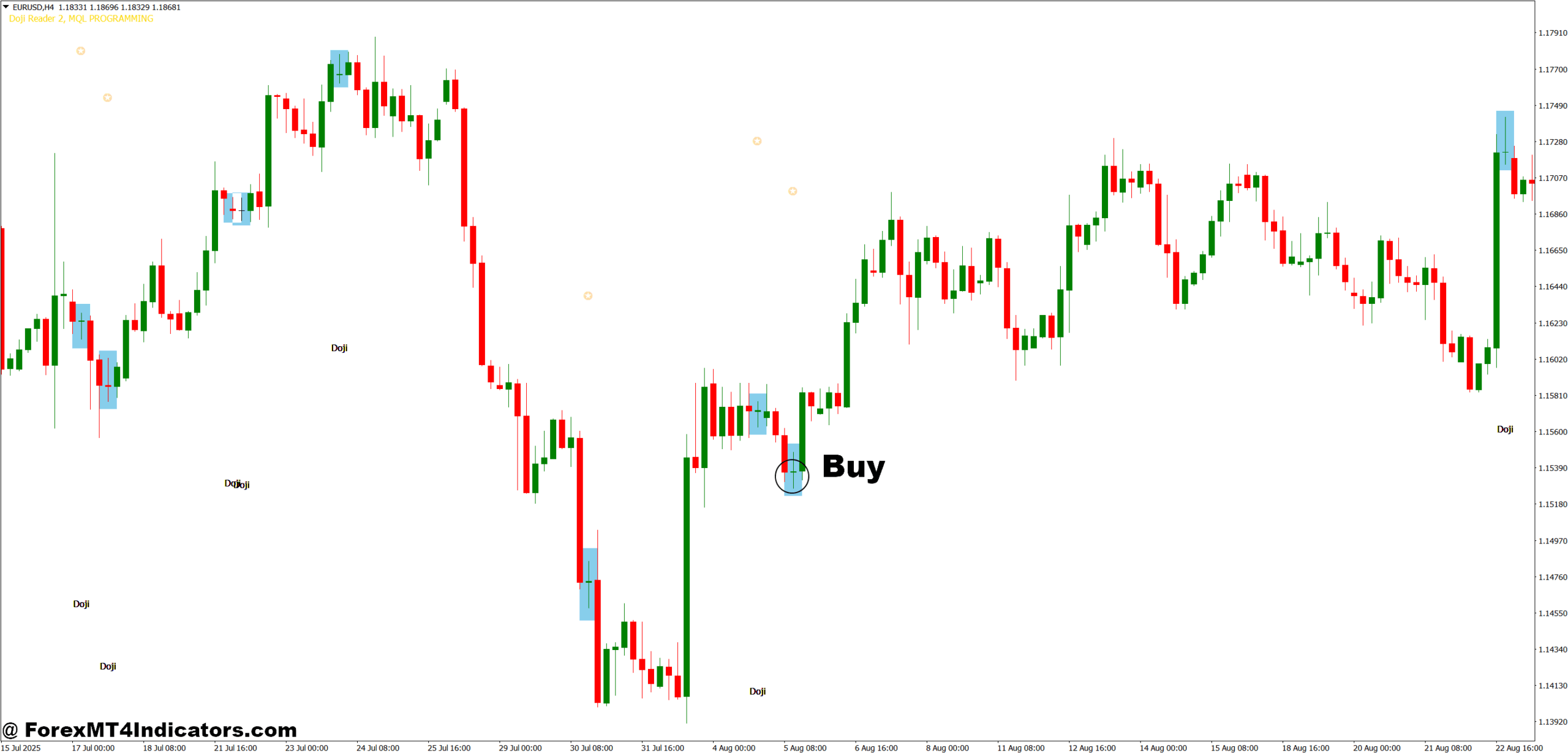 - Wait for doji at support – Enter long only when the indicator marks a doji within 5-10 pips of a tested support level on EUR/USD 4-hour chart, not random mid-range formations.
