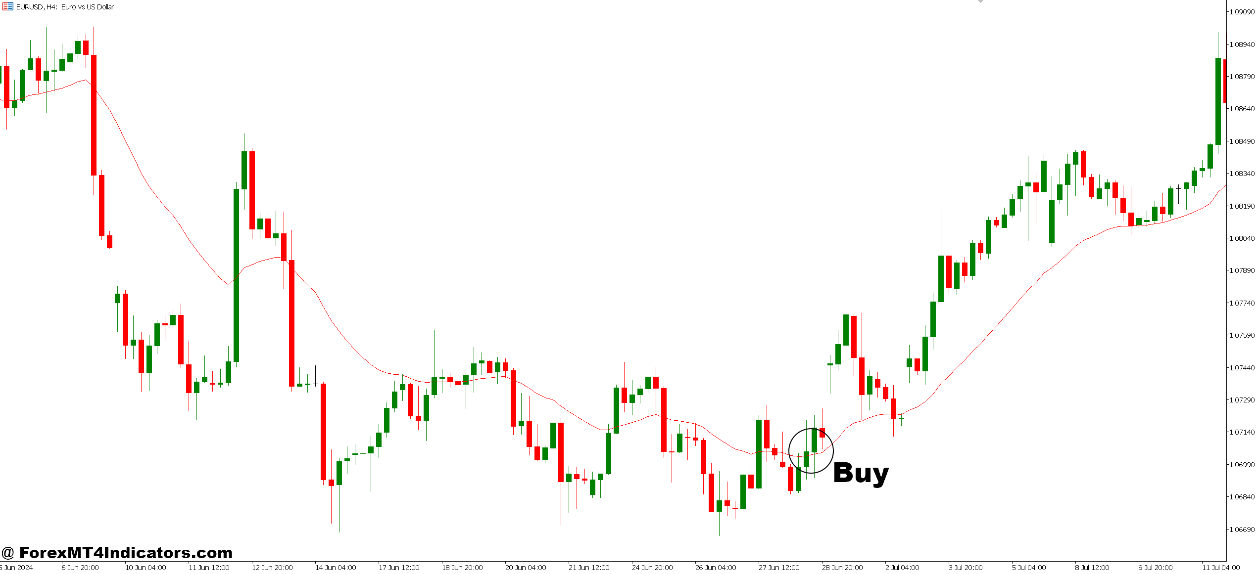 - Price closes above 50 EMA – Wait for a full candle close above the 50-period EMA on the 4-hour EUR/USD chart; don’t enter on wicks or during the candle formation.