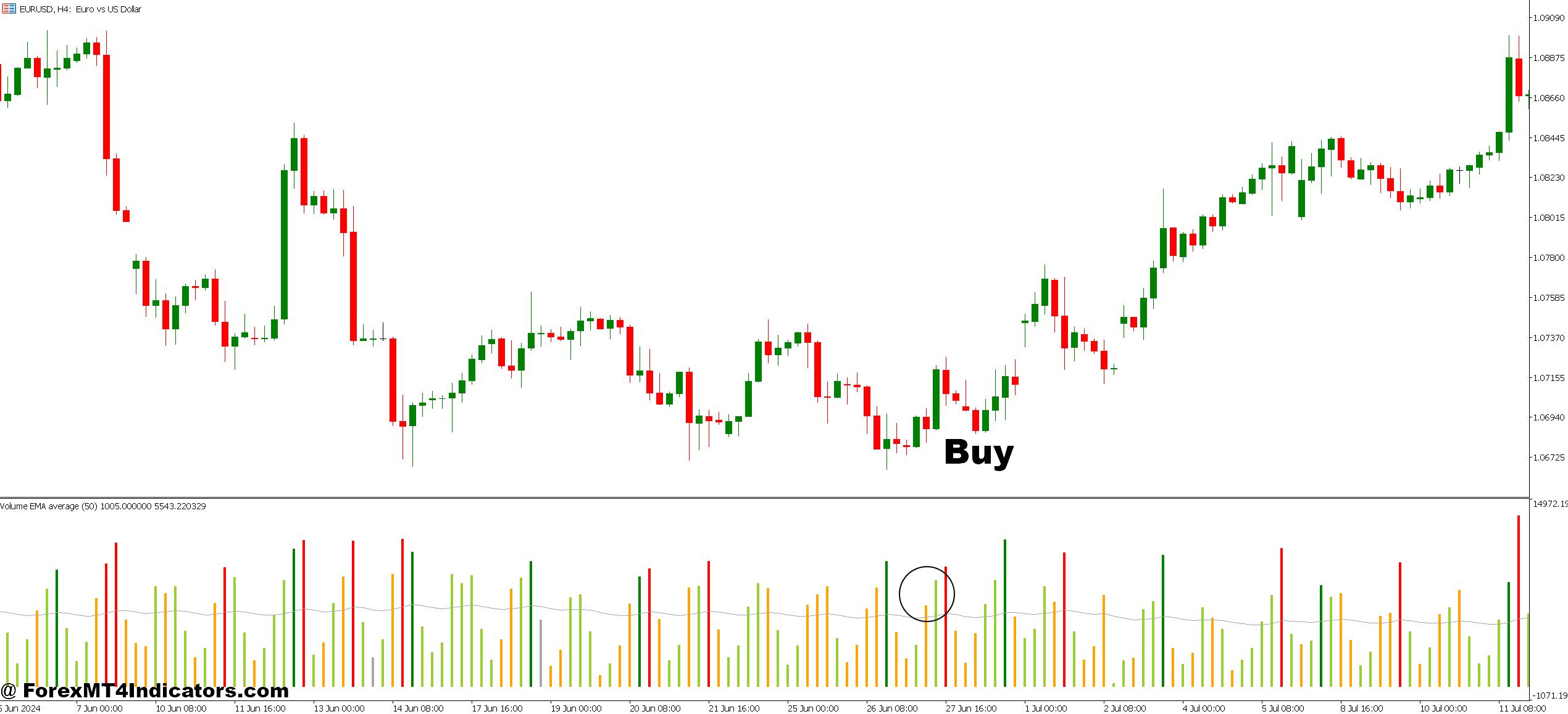 - Volume surge on breakout above resistance – Enter long when price breaks a key level (like 1.0850 on EUR/USD) with volume 2x the 20-period average on the 1-hour chart or higher timeframes.