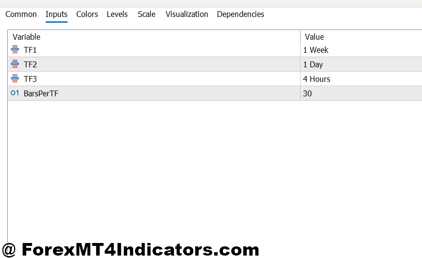 The MTF Trend Indicator MT5 offers several parameters you can adjust: