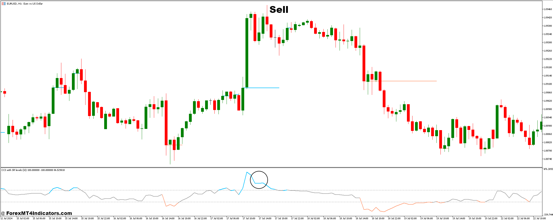 - Confirm CCI Signal: Ensure the CCI is above +100, indicating overbought conditions.