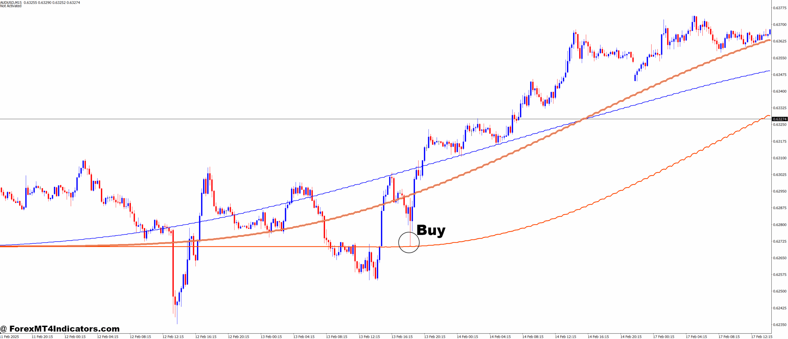 - A recent candle closes above the indicator line with a bullish body.