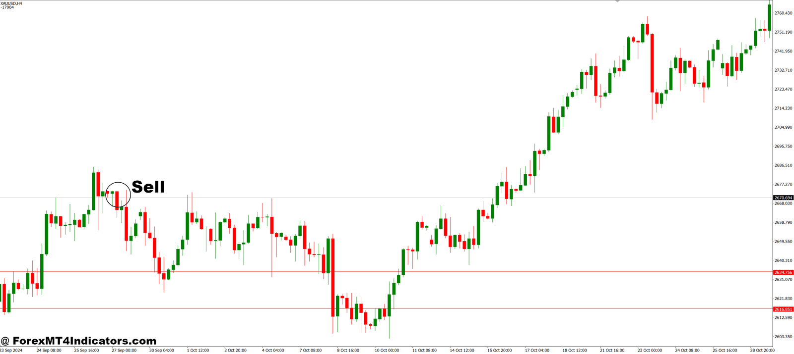 - Wait for the price to move below a high-volume price zone, indicating selling dominance.