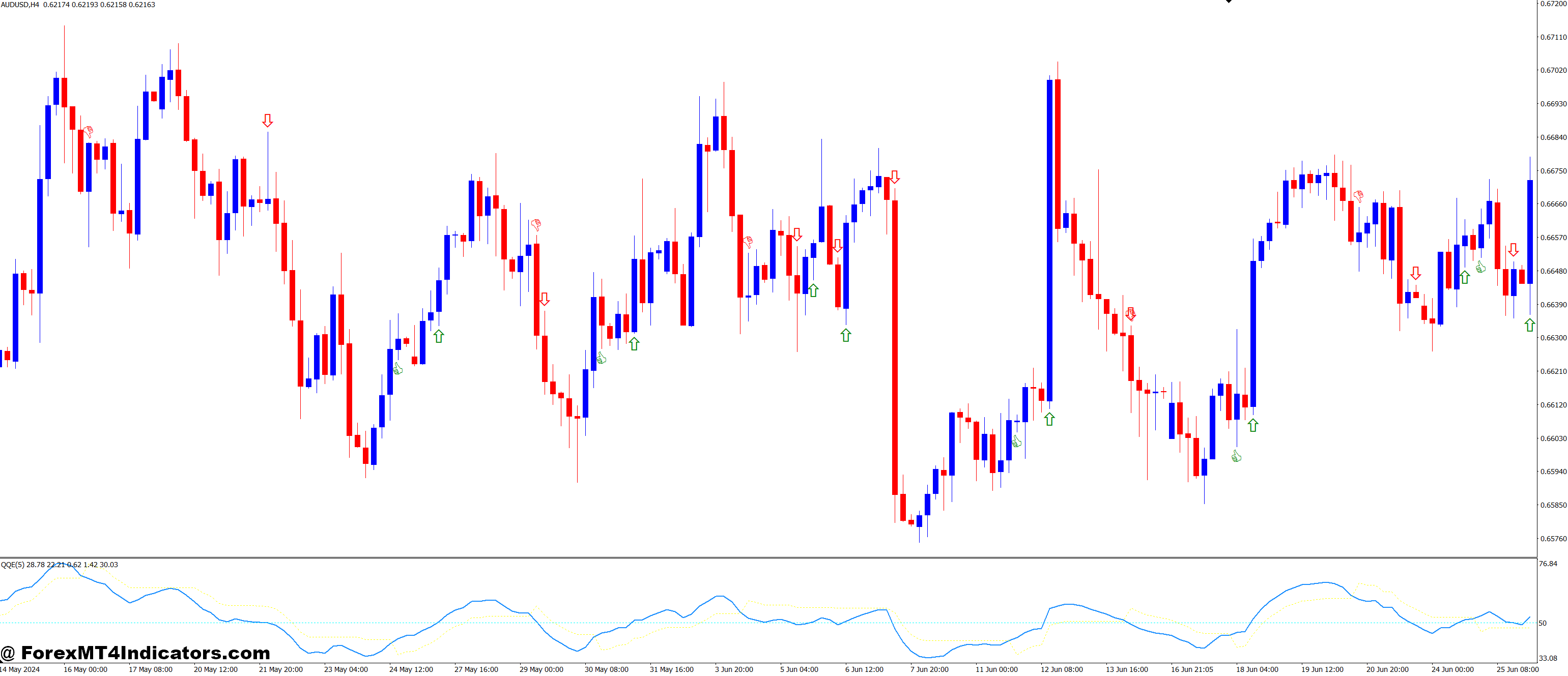 One of the key features of the QQE indicator is its ability to generate reliable buy and sell signals. The indicator uses two main lines—the fast line and the slow line—to show the direction of market momentum. When these lines cross each other, it signals a possible change in trend direction, giving traders a clear indication of when to enter or exit the market.