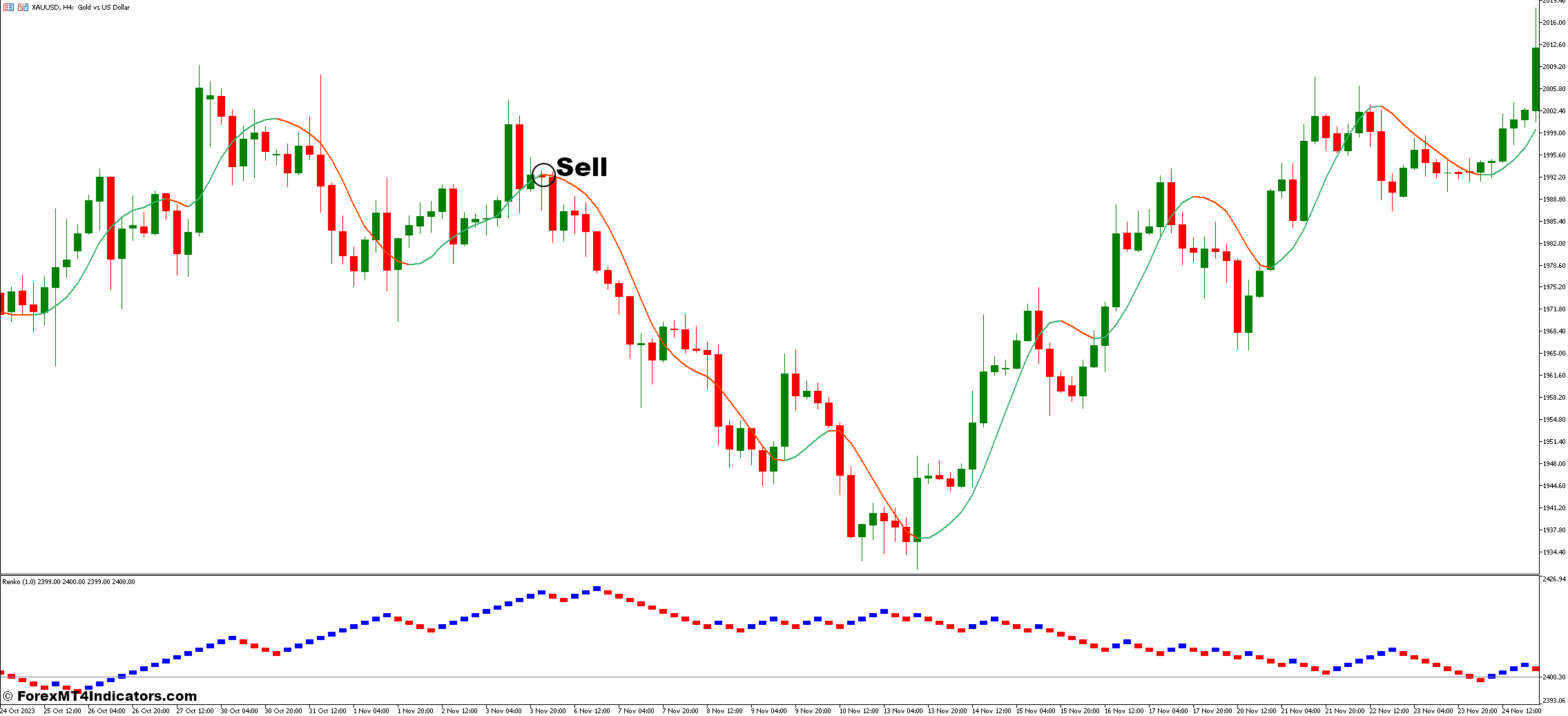 - Ensure that the Hull Average 2 is trending downwards and has crossed below the price, confirming bearish momentum.
