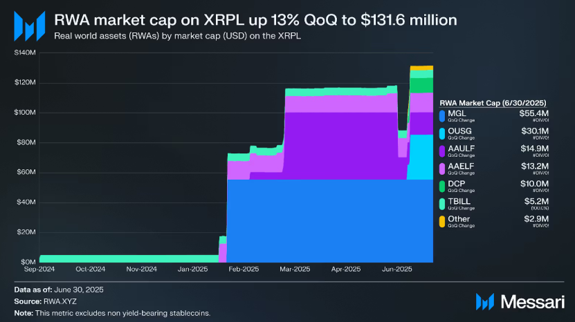 In a separate development, the real-world asset (RWA) market cap on the XRP Ledger increased by 13% quarter-over-quarter to $131.6 million. The market infrastructure service provider, Montis Group Limited (MGL), launched by a partnership between Ripple and Archax, led the proceedings with $55.4 million.