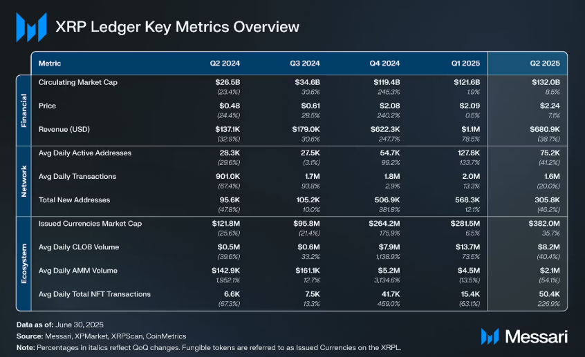 Notably, one of the major highlights was the appreciable expansion in the XRP market cap. The token’s circulating market cap closed at $132 billion in Q2 2025, representing an 8.5% increase from the previous quarter.