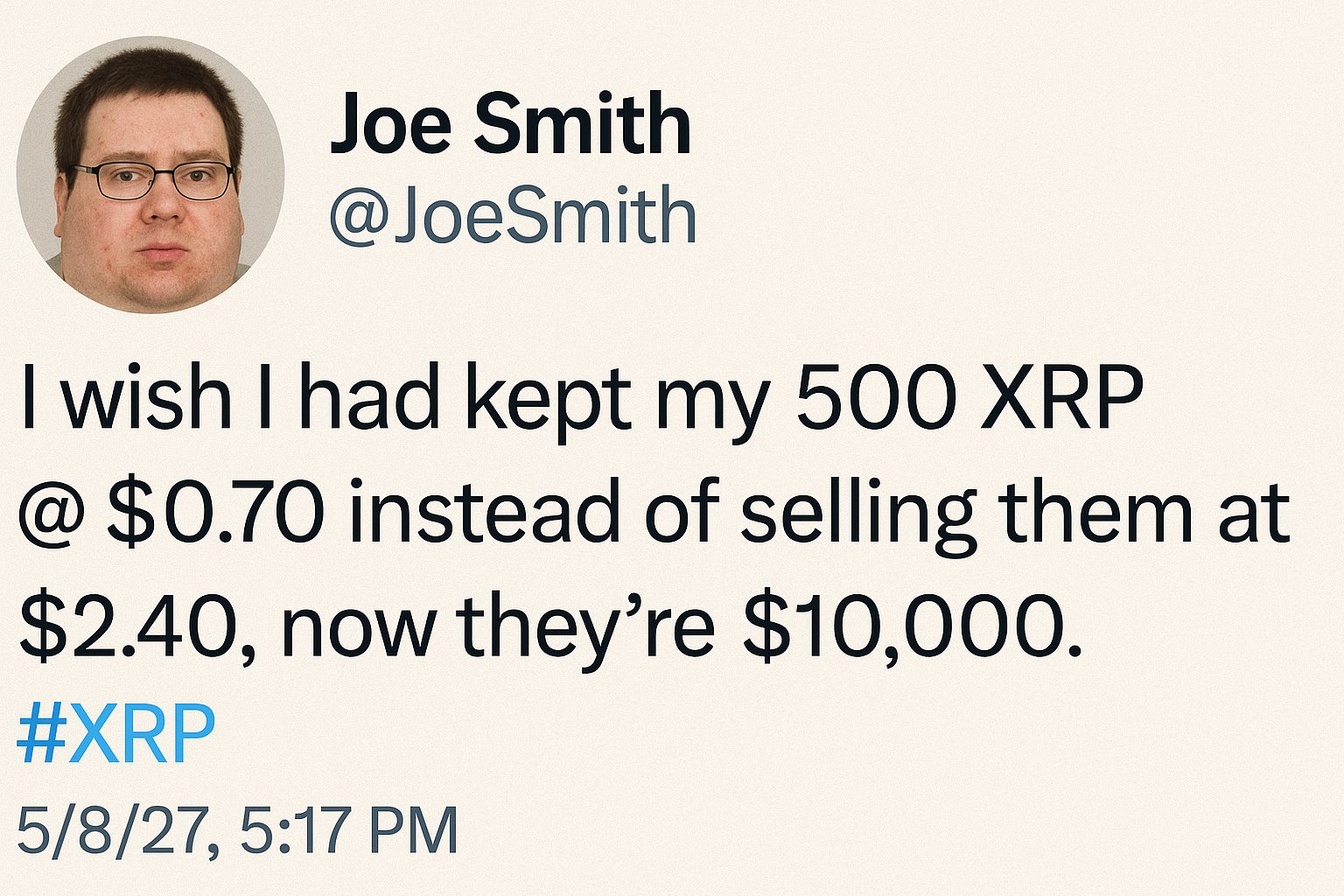 Specifically, this hypothetical Joe Smith would be lamenting that he had sold his 500 XRP, purchased at $0.70 in 2024, for $2.40 in 2025. By 2027, those same 500 XRP could be worth $10,000. Instead, he sold them for just $1,200.