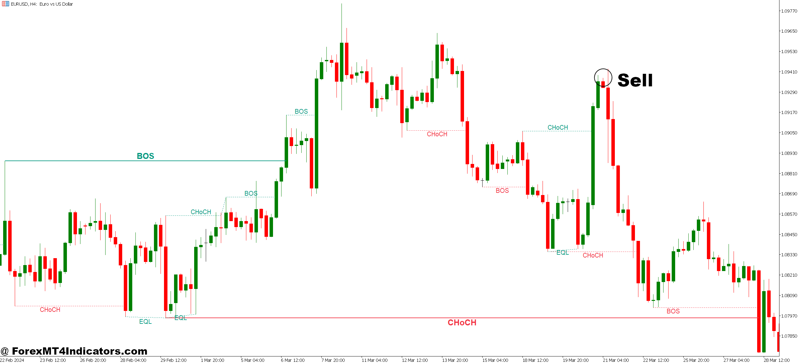 - Bearish Order Block Test – Enter short when EUR/USD rallies into a red-marked bearish order block on the 4-hour chart, waiting for a bearish engulfing or strong rejection wick before selling.