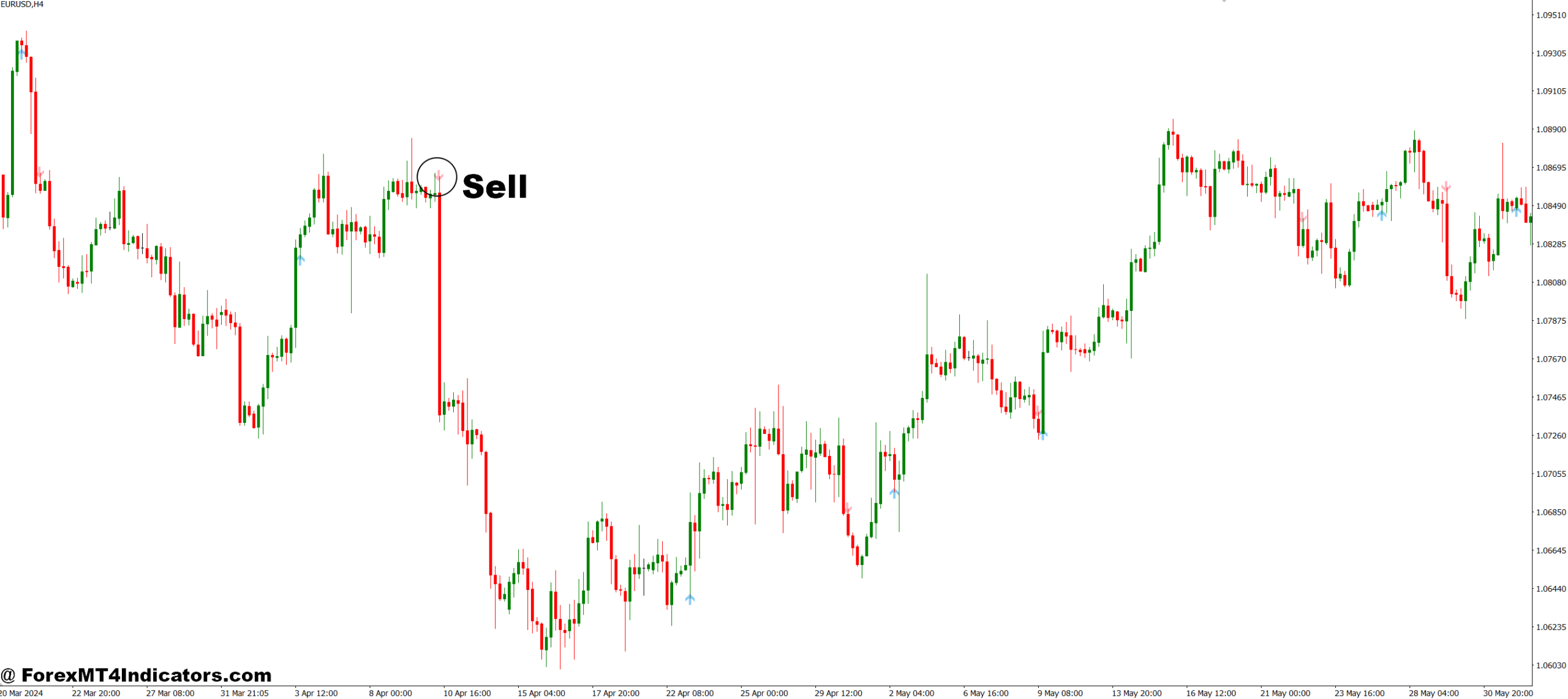 - Enter a sell trade at or near the signal candle close.