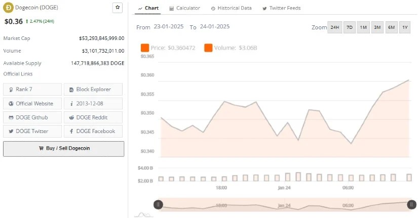 Dogecoin is currently priced at $0.3595. It has gained attention after news of a Dogecoin ETF filing by Bitwise. This indicates increasing acceptance of DOGE in the market. With a market cap of $53.11 billion, Dogecoin continues to show its strength and potential.