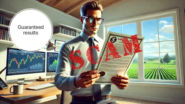 To avoid scams, adopt an exponential scale of skepticism—the higher the promised returns, the more skeptical you should be. Remember, there’s no quick path to wealth, especially in trading. Do your homework, and be prepared to walk away from anything that seems too good to be true.