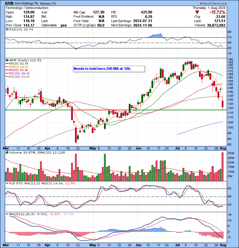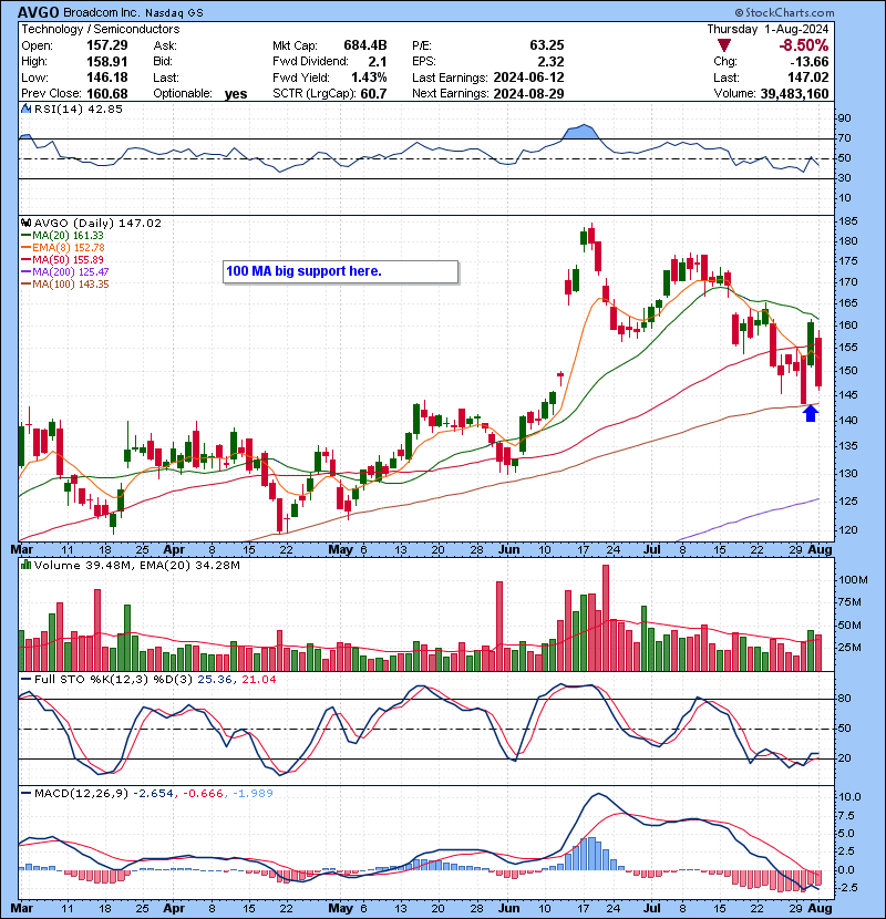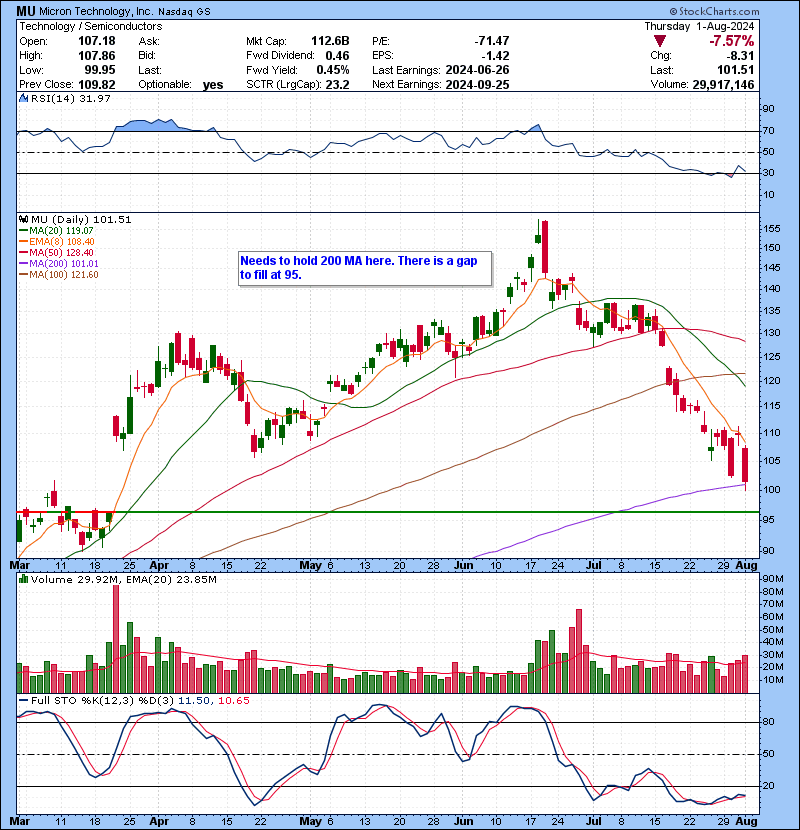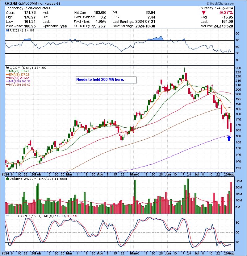 QQQ big sell off after big rally Wednesday. 100 MA holds for up again for now but chart is vulnerable.