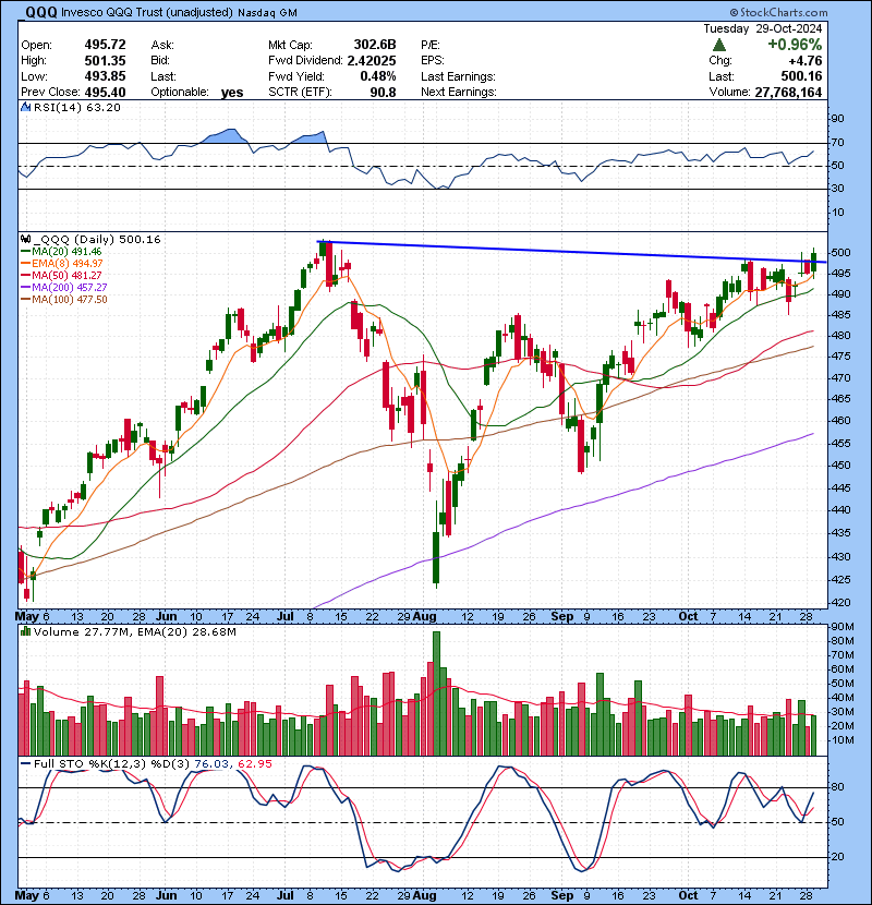 QQQ closed over the psychological 500 mark. Dips getting bought, bullish action all around. Beginning of earning season so mostly watching earning related/momentum plays. LEU,AVGO, SMR,MSTR some nice runners from watch list.
