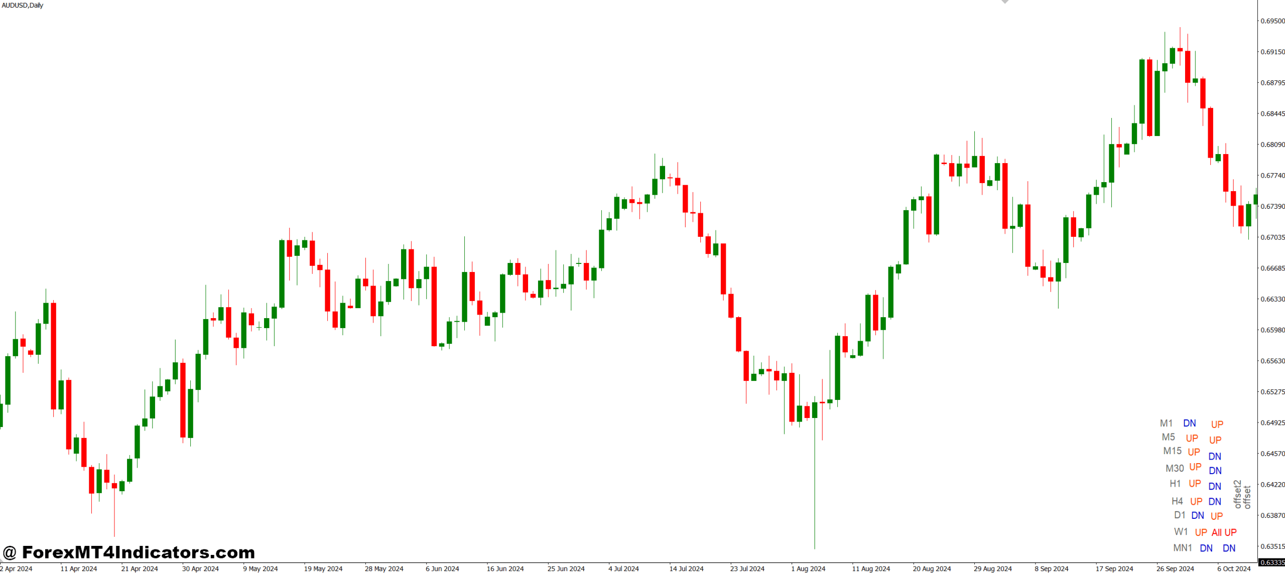 The Trend Indicator for Several Timeframes MT4 is a versatile tool that displays trend direction across multiple timeframes in a single chart window. Instead of analyzing individual charts separately, traders can instantly see whether the market is bullish, bearish, or neutral across short, medium, and long-term frames. This visual clarity reduces confusion and allows for more informed trading decisions. The indicator uses color-coded signals and arrows to indicate trend shifts, making it accessible even for beginners while powerful enough for experienced traders.