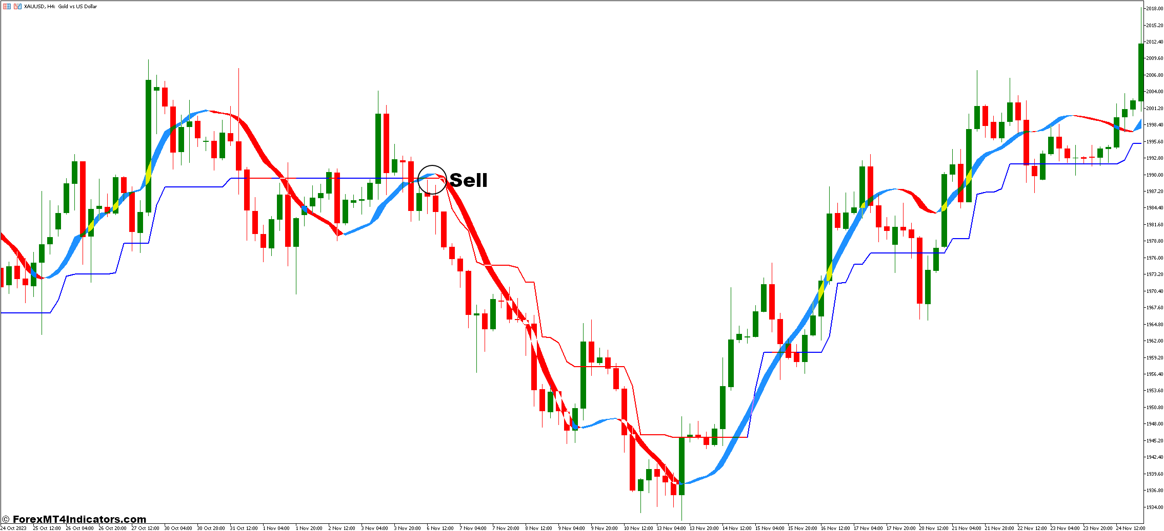 - Confirm the bearish trend by ensuring the Kolier SuperTrend indicator line is red.