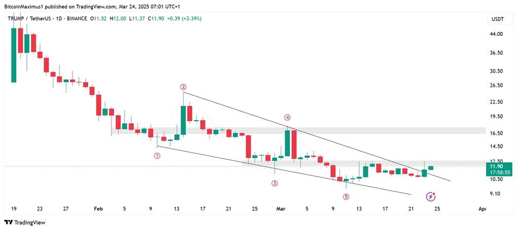 - If $TRUMP successfully breaks and sustains above $12.50, the next target would be $17.