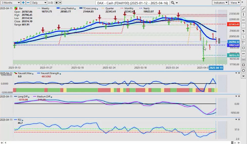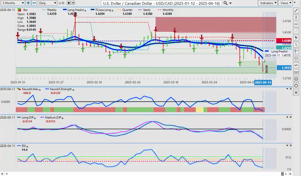 Right now, the Kiwi structurally looks a little stronger, and that’s because of Aussie’s ties to China here, right, so if you’re going to buy one of these two, I would argue probably the Kiwi is the slightly safer bet, but they’re both going to be affected. You can see the breakdown below the yearly opening price, equity markets recover on Wednesday, and so do the, so does the Aussie, so does the Kiwi, so does the Canadian Dollar for a broader dollar sell-off. So I would expect another volatile start to the week on Monday. My strong recommendation is, is let all markets come in, assess where we’re at at say 11, 10:30, 11:00 a.m on Monday, and then look, then look to enter into the markets on Monday evening or Tuesday morning. So, with that said, this is the Vantage Point AI Market Outlook for the week of April the 14th, 2025.