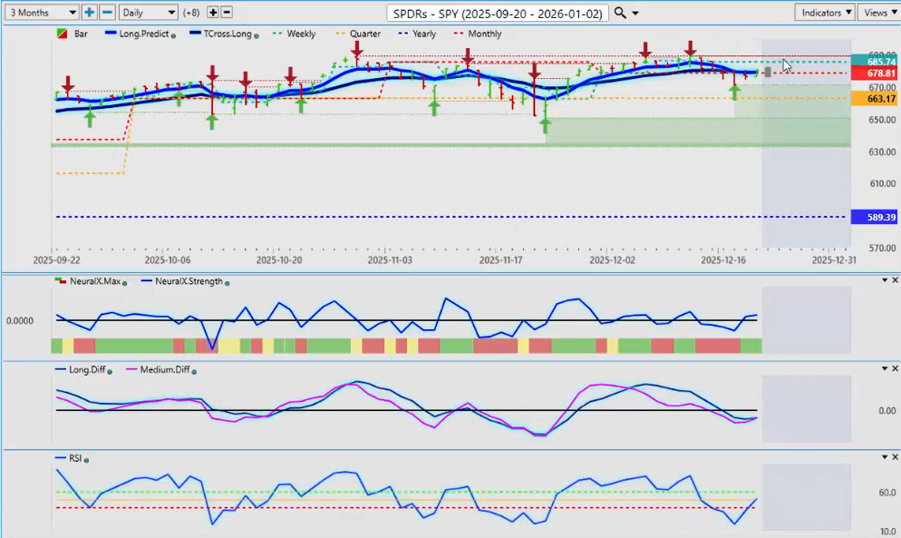 My name is Greg Firman, and this is the Vantage Point AI market outlook for the week of December the 22nd, 2025. Now, as we round into year end here, some pretty choppy trade this past week, but let’s go through it and we’ll look at, uh, some ETFs, we’ll look at some, uh, forex pairs, uh, and again some of our main commodities.