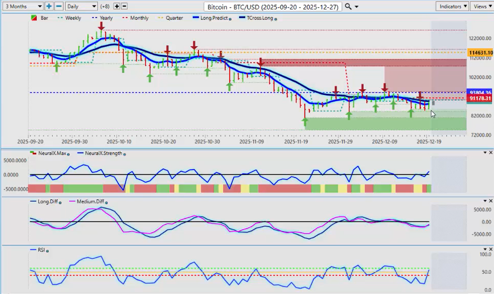 The TROS long coming in at 89,466. That is what’s stopping us from moving higher. Once, if we can clear that, then potentially we can go higher. And the VP indicators are suggesting that that is going to happen next week.