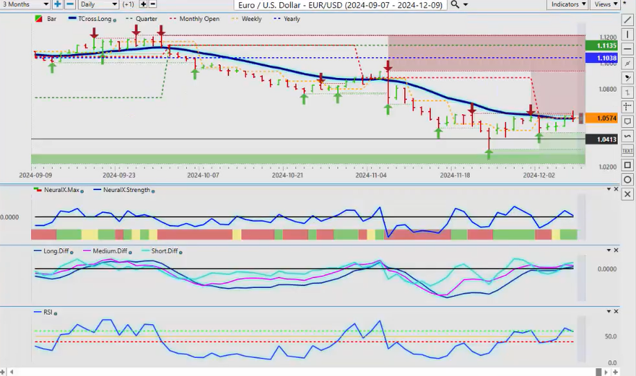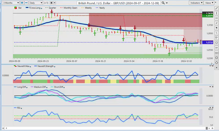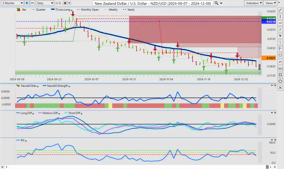 Now the same thing will happen with the Kiwi here, uh, if you can see it testing that T-cross long, now if we get above 58.87 then we could have longs here, so another busy week, uh, another choppy week coming with the US CPI but with that, there will be opportunity. So again, this is the with that said, this is the Vantage Point AI Market Outlook for the week of December 9, 2024.